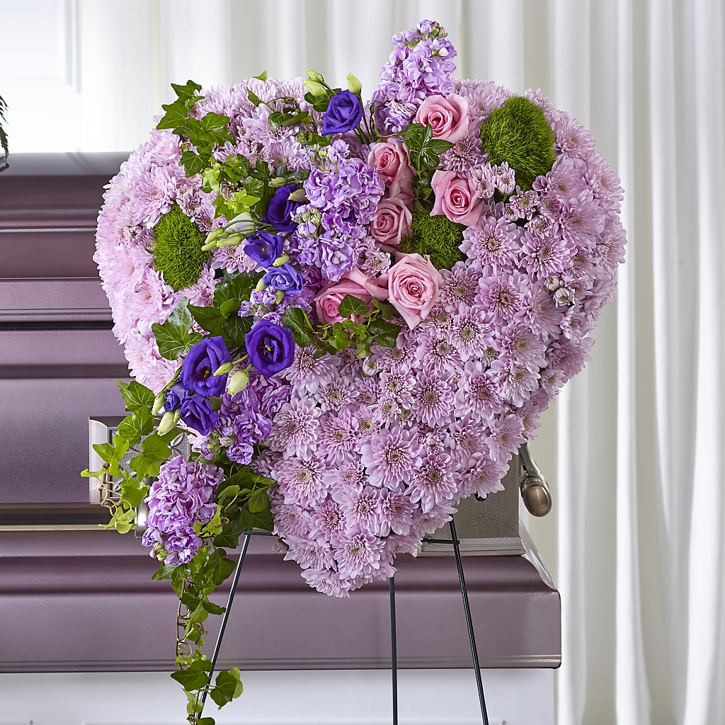 Para quienes siempre llevarás en tu corazón, comparte tu pésame con nuestro Corazón de Pie "Amor Preciado". Este hermoso arreglo es una versión conmovedora de un corazón tradicional y está elaborado con pompones de cojín, rosas, lisianthus y alhelí.